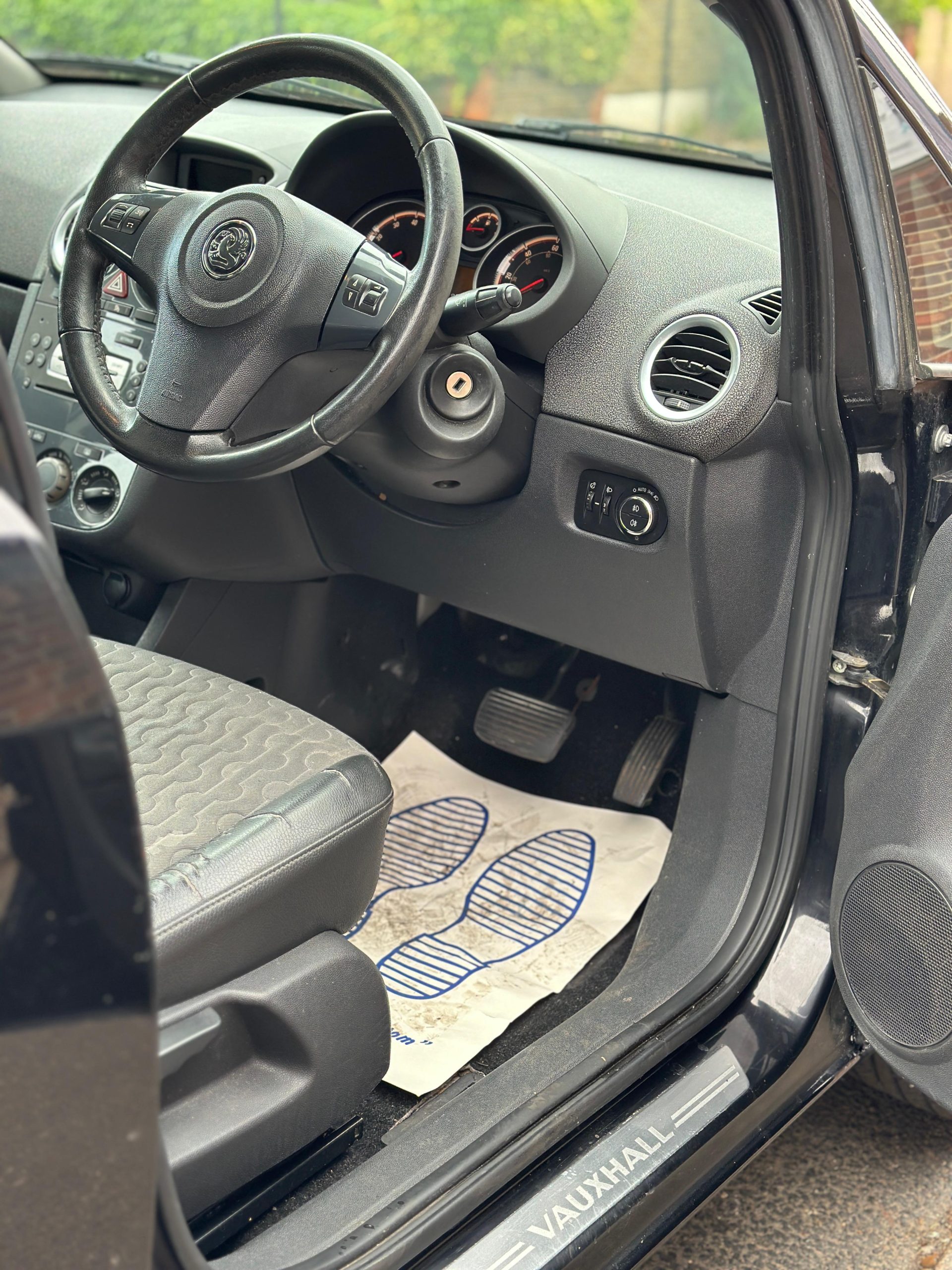 The 2012 Vauxhall Corsa 1.4 SE Auto has a 1.4-liter 4-cylinder engine producing 98 bhp. It features a 5-speed automatic transmission.